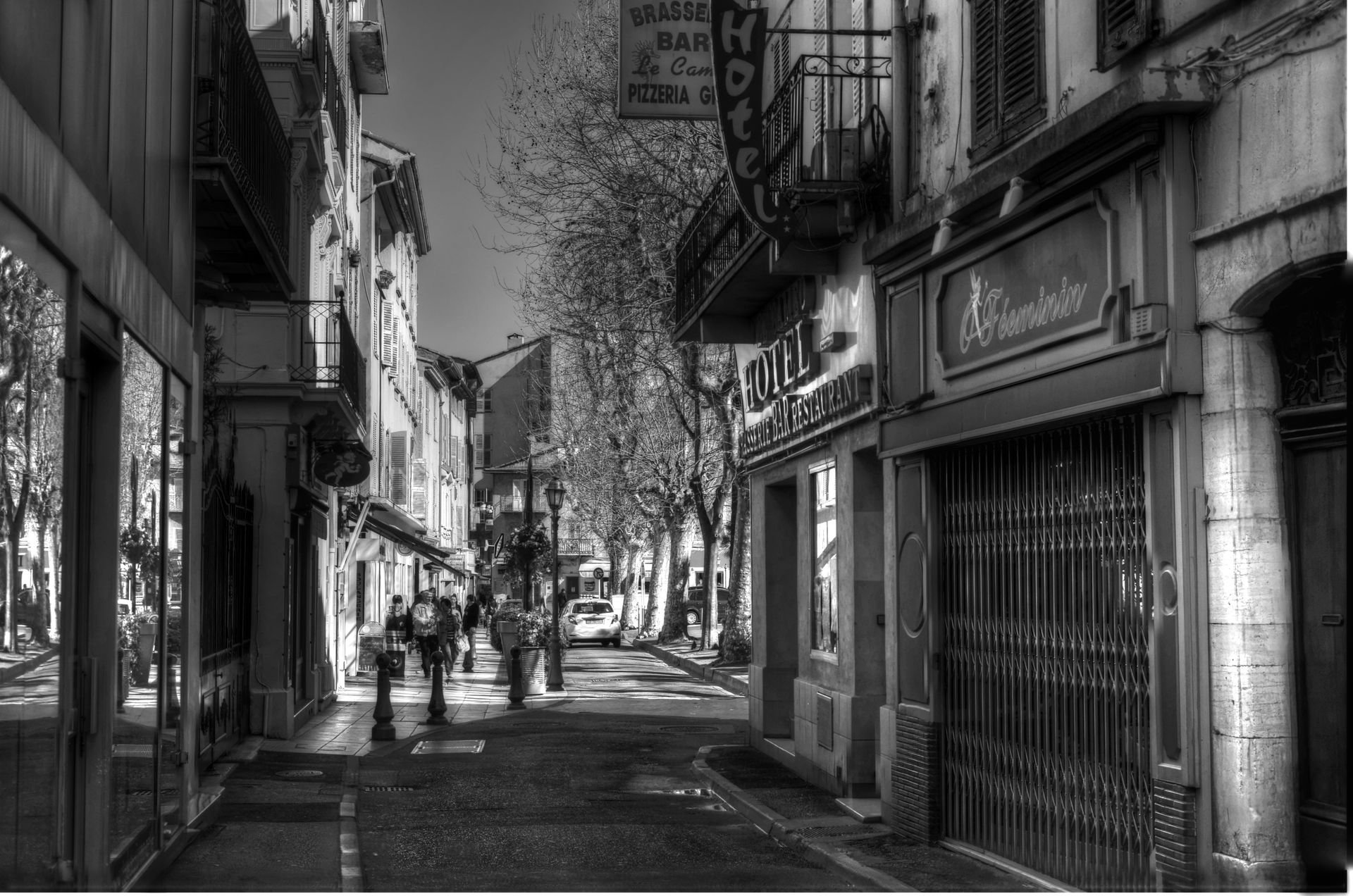 A l’intérieur du Vieil Antibes, une rue allant de la porte Est jusqu’à l’entrée de la cité est parée de fabricants de produits artisanaux et artistiques , mais également des bars anglophones où beaucoup de britanniques et de personnes issues de l’Europe du nord aiment à se retrouver, la plupart ayant leur bateau amarrés dans le port, juste en face.