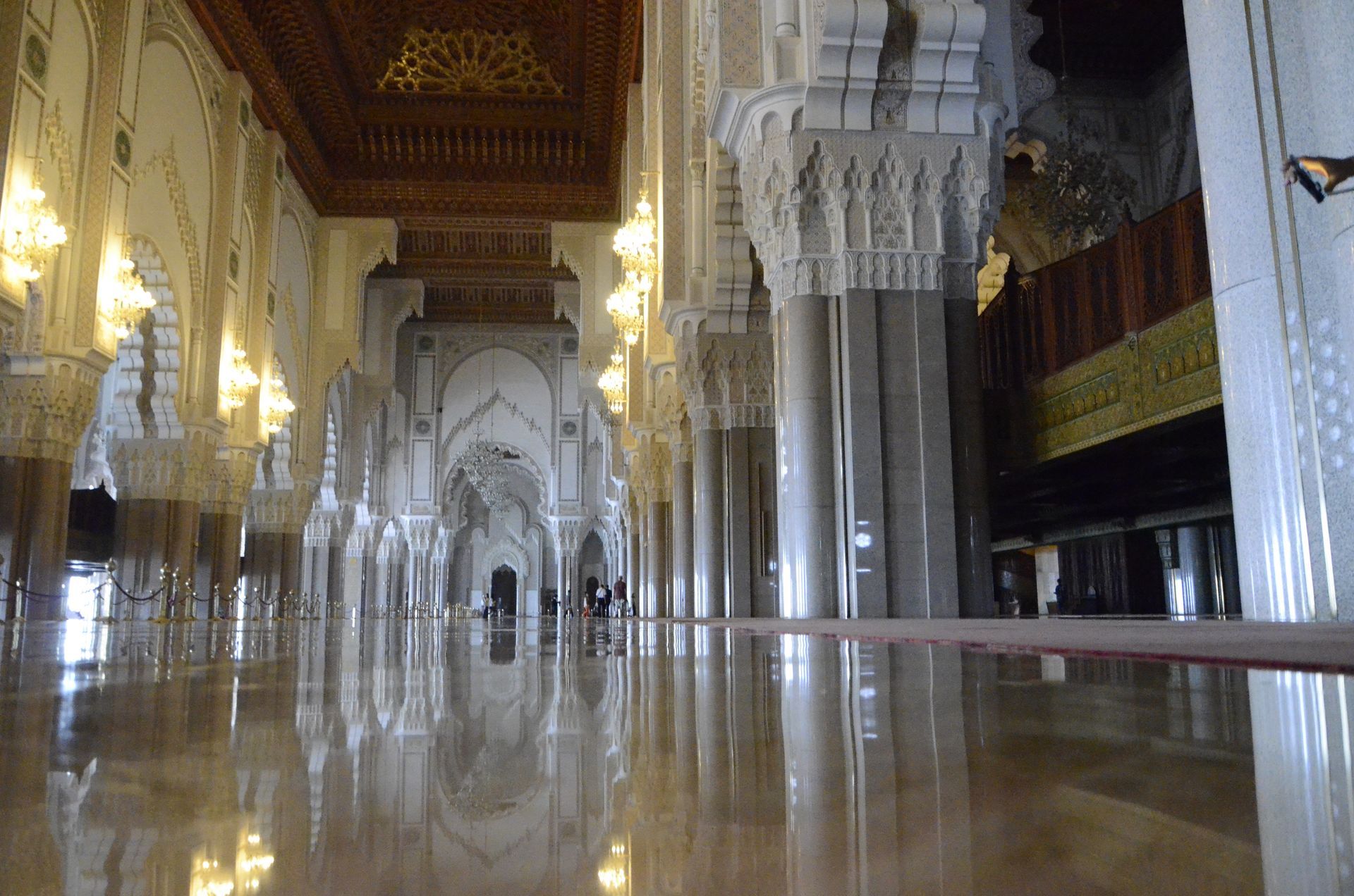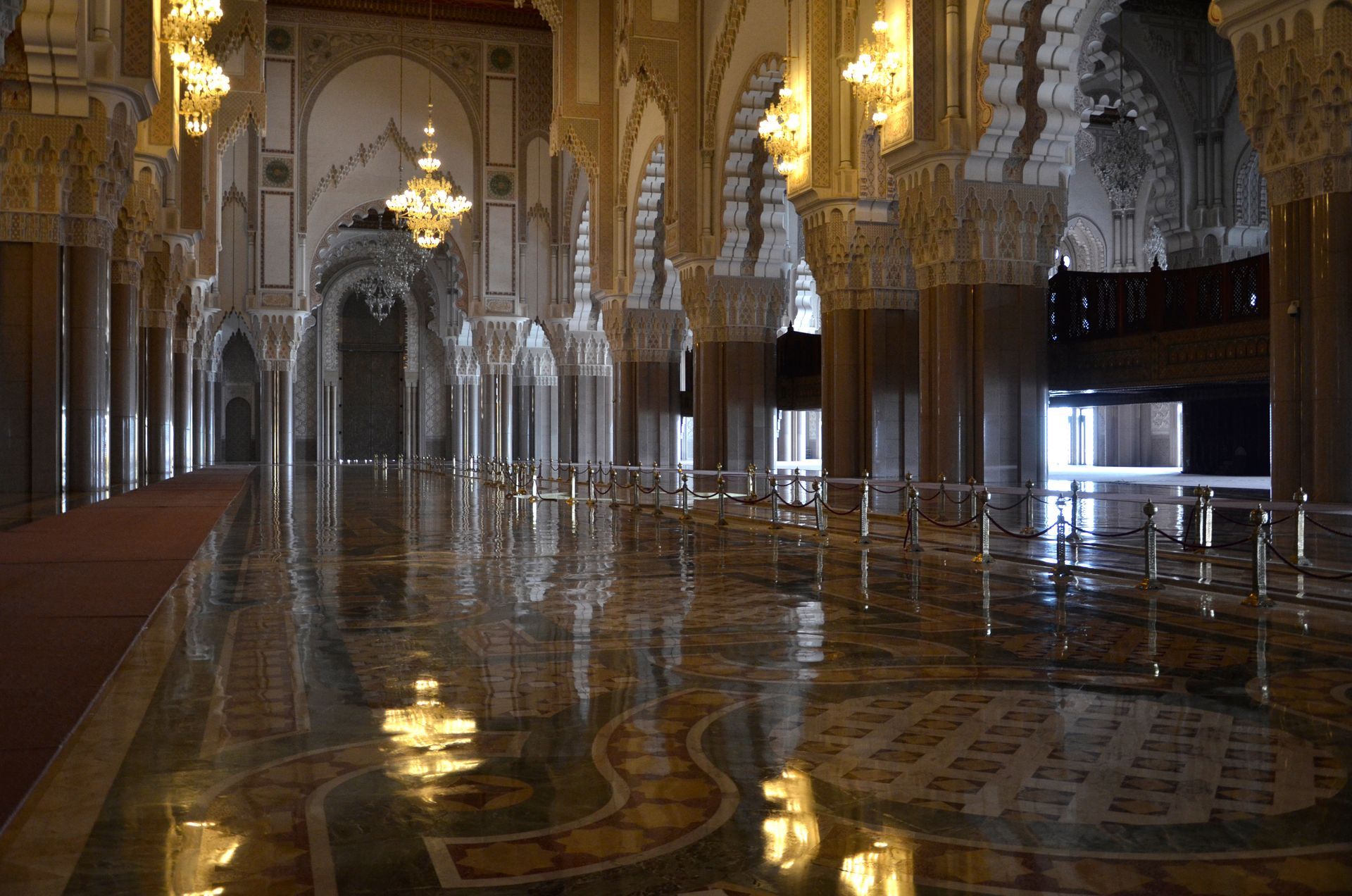 Avant d’entrer à l’intérieur, assurez vous d’avoir une tenue décente et n’oubliez pas d’enlever vos chaussures, par tradition religieuse, pour respecter et ne pas salir le lieu de prière. Lieu de prière assez conséquent en terme d’espace, pouvant accueillir 25000 personnes. Ce qui fait, en complément des 80000 fidèles qui prient à l’extérieur, plus de 100 000 personnes lors de grandes fêtes religieuses.