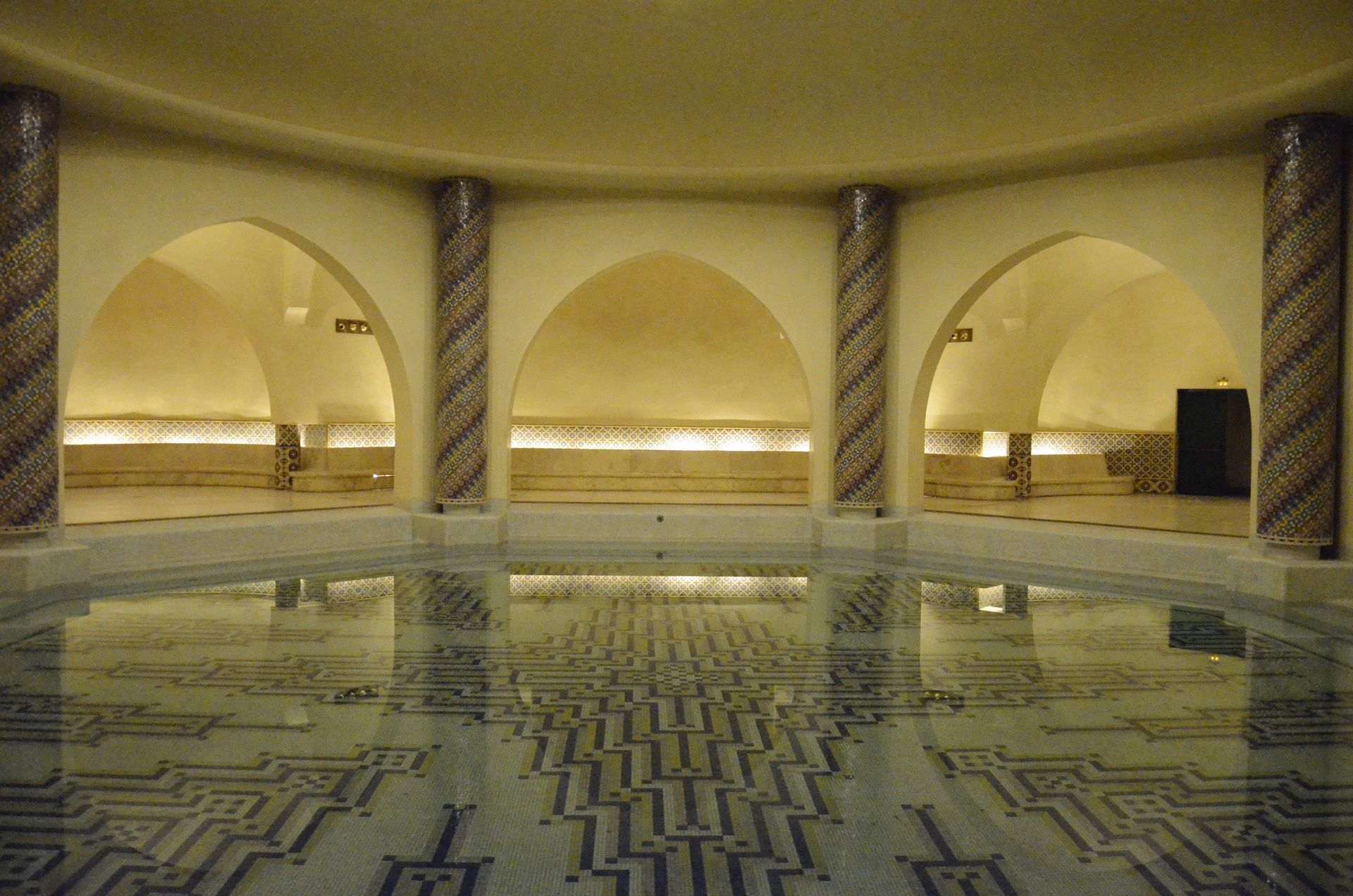 Cette esplanade est un écrin dont la mosquée Hassan II est le bijou. Il fait, bien évidemment la fierté des Bédaouis/Casablancais, fierté architecturale, de beauté. Le monument a été construit par des dizaines de milliers d’artisans, finement décoré de marbre, de zelliges, de pans de bois sculptés et il possède un laser (de 30 km de portée) constamment pointé vers la Mecque.