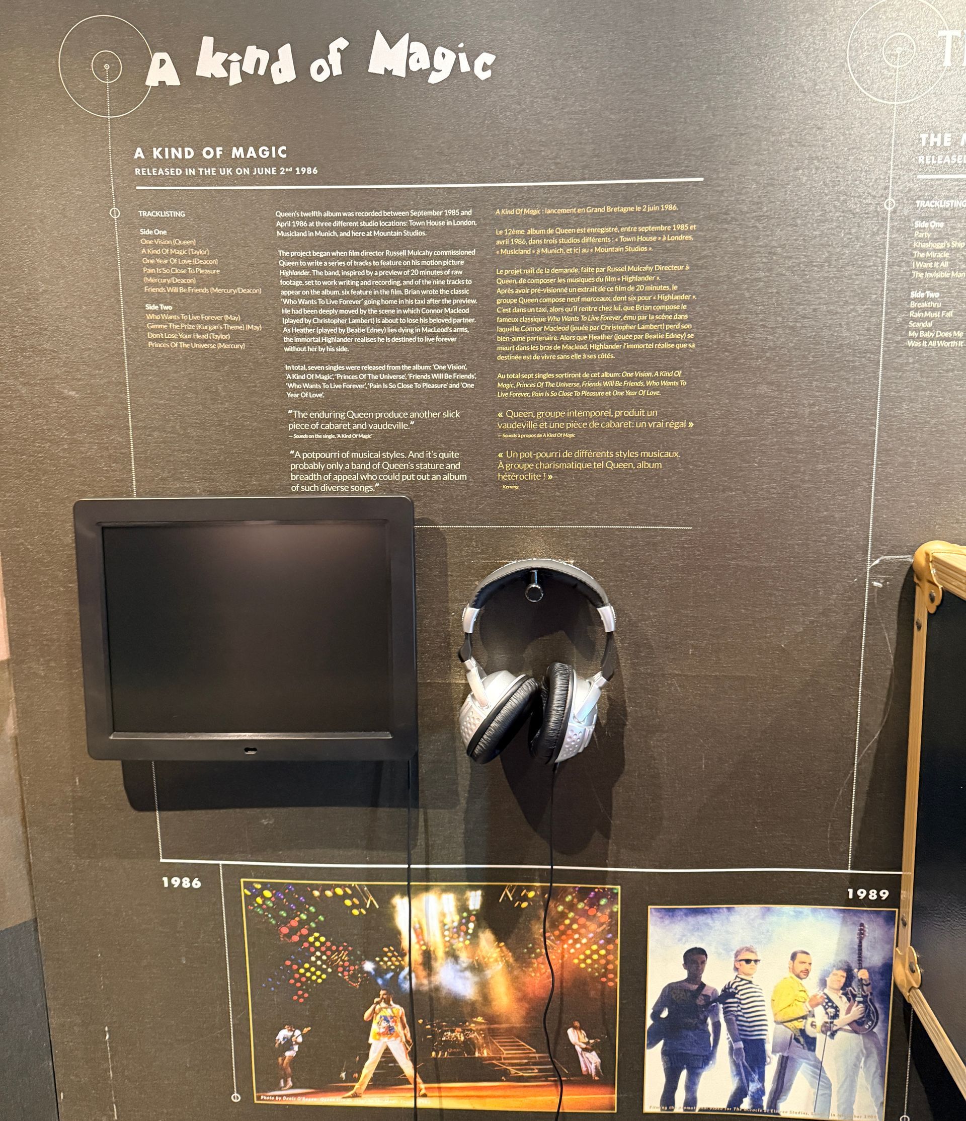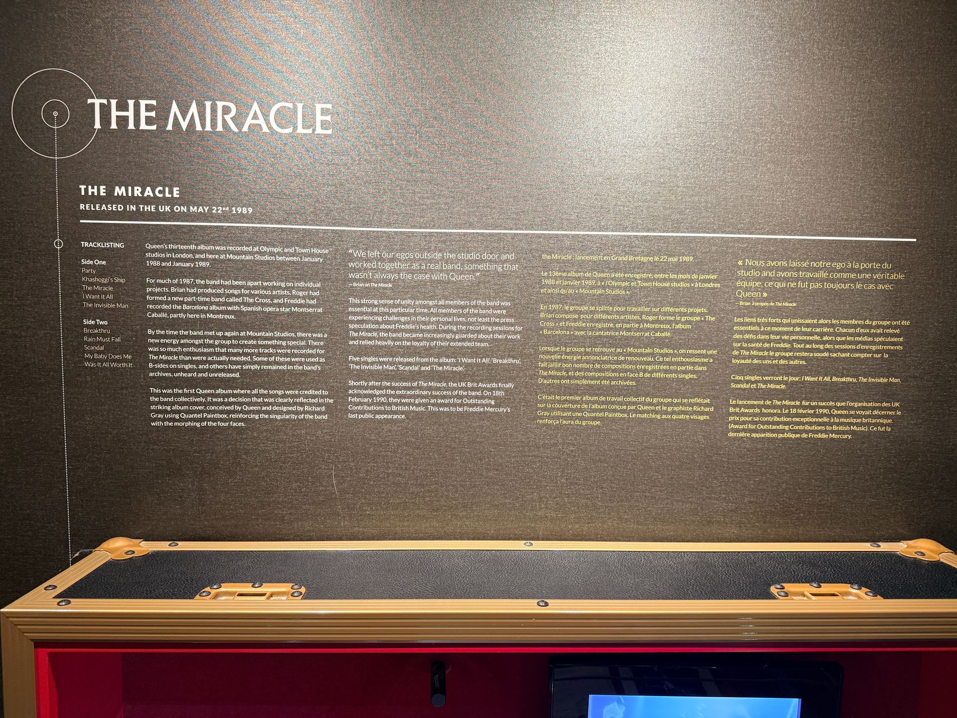 L’exposition se trouve dans le Casino Barrière de Montreux, à l’endroit même des anciens Mountain Studios. C’est ici que Queen a enregistré une bonne partie de ses albums entre 1978 et 1995.