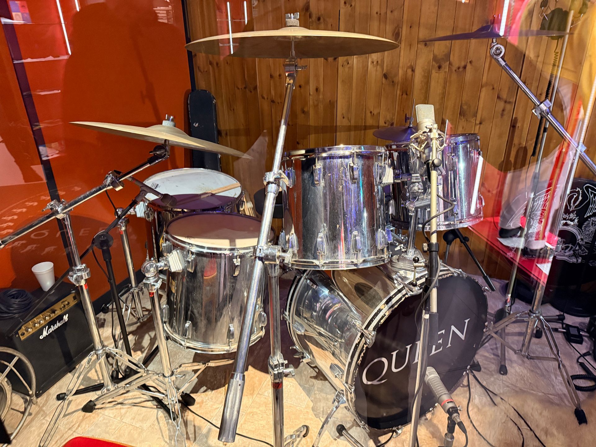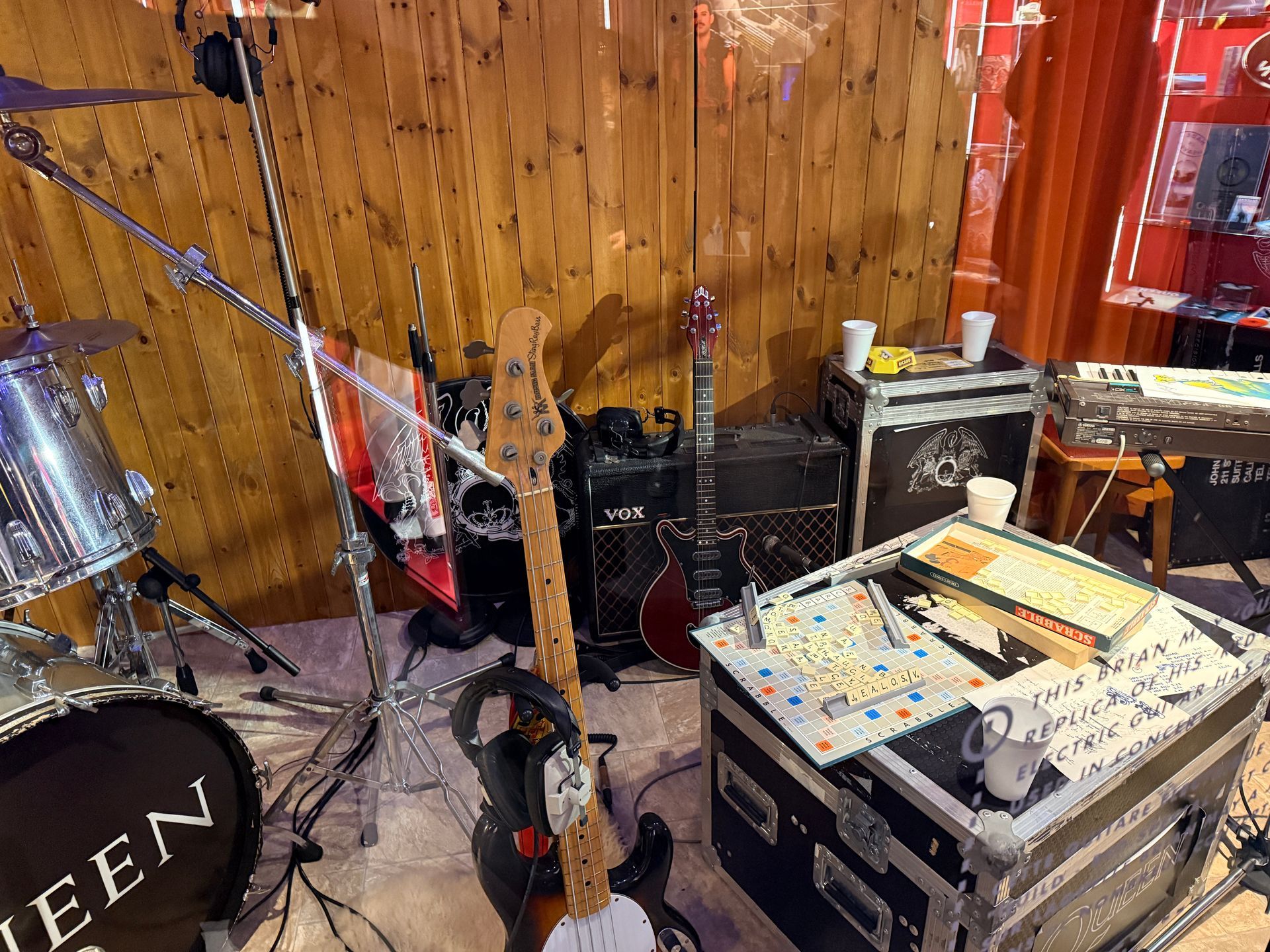- 🎸 Des instruments emblématiques (basse, batterie, réplique de la guitare de Brian May)