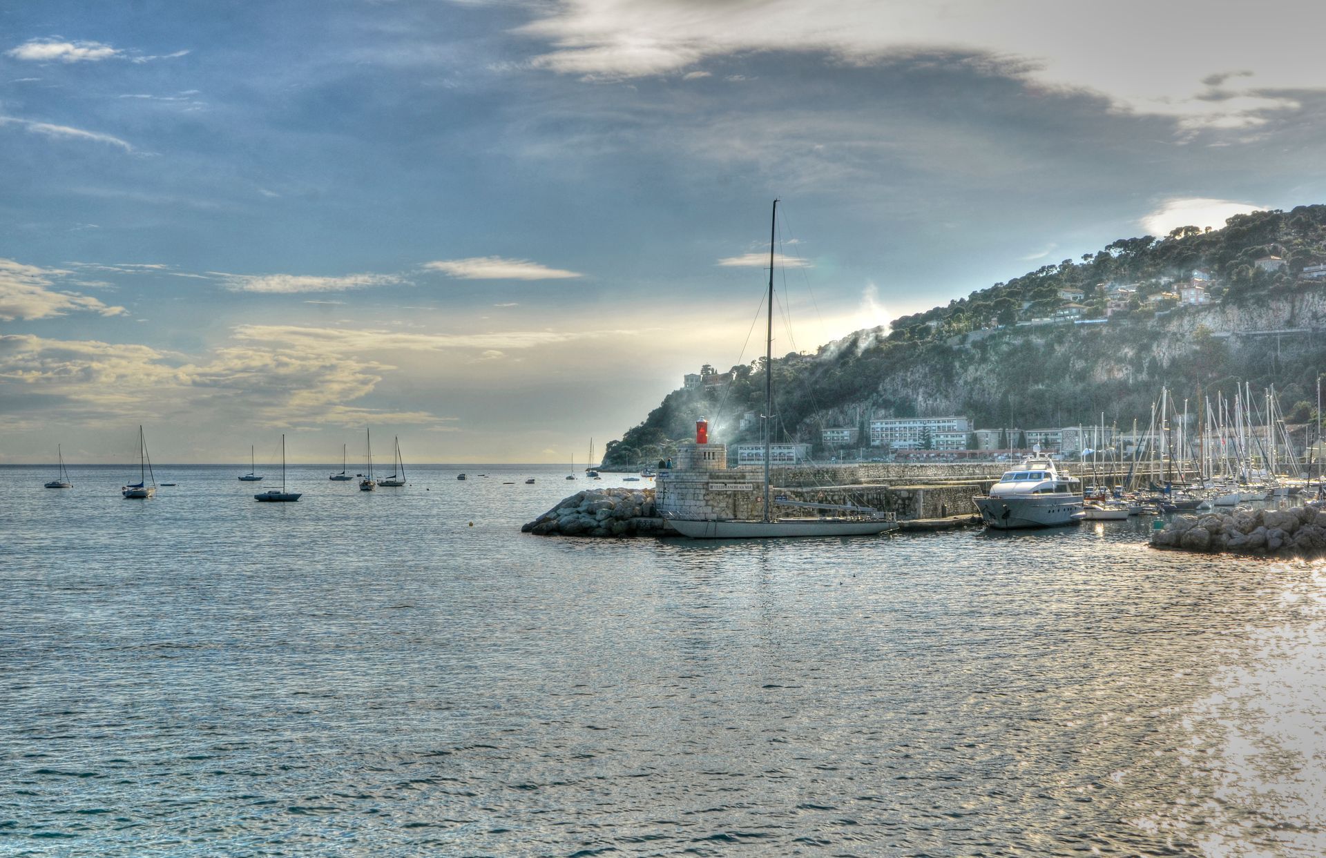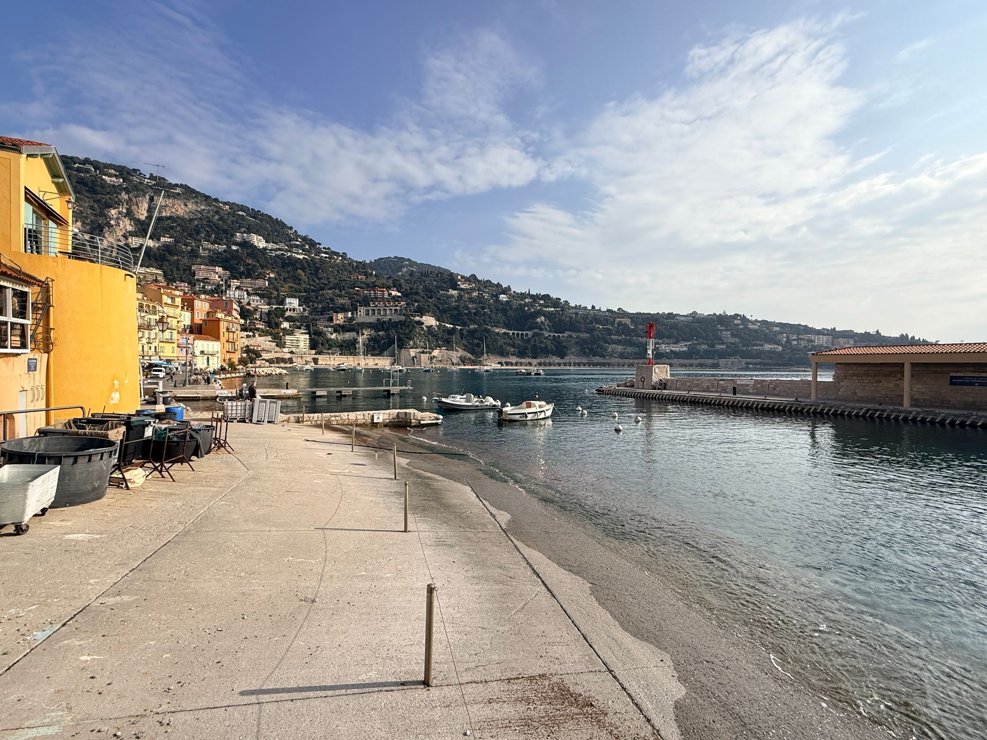 Entre Nice et Monaco, mais l’ambiance n’a rien à voir. C’est plus doux, plus posé. La baie est incroyable : une des rares rades naturelles en eau profonde de la Méditerranée. Du coup, elle est super protégée, presque toujours calme, avec cette couleur d’eau… un bleu profond qui tire parfois vers le turquoise. On comprend vite pourquoi les marins s’y arrêtaient depuis des siècles.
